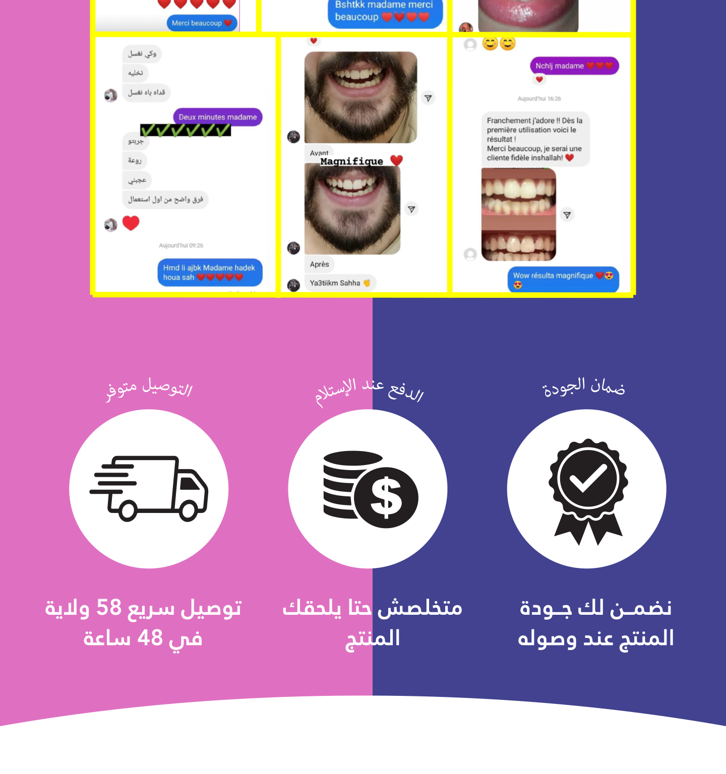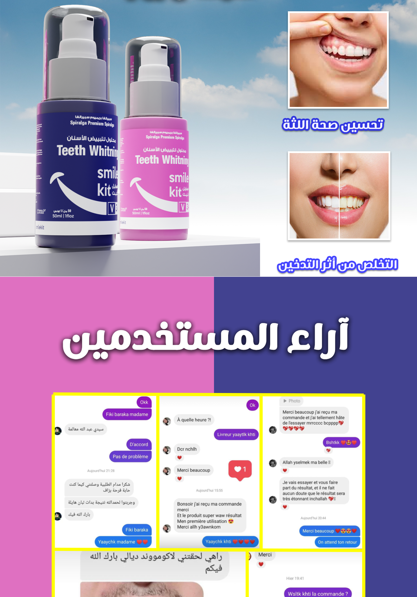 تهانينا! لقد وجدت للتو المصحح المثالي.بفضل تقنية ، احصل على أكثر من 3 درجات بيضاء إضافية. إنه ينظف بلطف ويعقم لترك شعورًا بالراحة والنظافة. حساس جدًا؟يقوي اللثة وينعشها على الفور!الأرجواني هو اللون المعاكس للأصفر ، ولهذا السبب تعمل تطبيق اللون الأرجواني على الأسنان على تحييد الألوان الصفراء لتظهر تظلا ذات لون أبيض لامع.