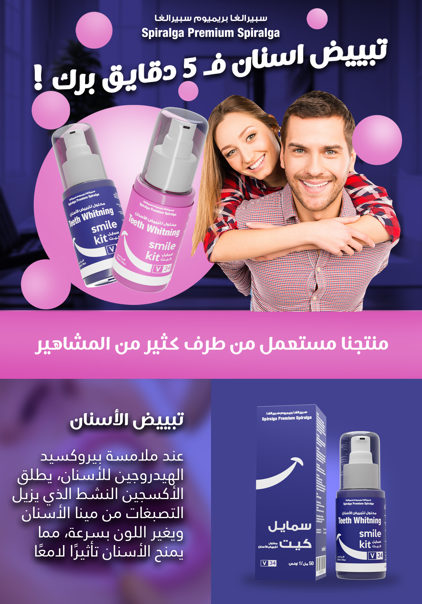 تهانينا! لقد وجدت للتو المصحح المثالي.بفضل تقنية  ، احصل على أكثر من 3 درجات بيضاء إضافية. إنه ينظف بلطف ويعقم لترك شعورًا بالراحة والنظافة. حساس جدًا؟يقوي اللثة وينعشها على الفور!الأرجواني هو اللون المعاكس للأصفر ، ولهذا السبب تعمل تطبيق اللون الأرجواني على الأسنان على تحييد الألوان الصفراء لتظهر تظلا ذات لون أبيض لامع.